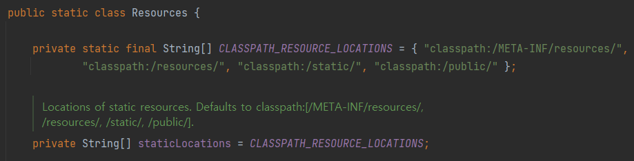 getStaticLocations() 은 아래의 classpath:/static/ 등등의 기본 경로들이다.